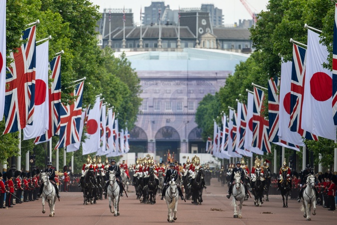 The Ceremonial Welcome of the Emperor and Empress of Japan during their state visit at the Horse Guards and Buckingham Palace. Emperor Naruhito and Empress Masako of Japan are beginning a three-day state visit to the UK. London. June 25 2024., Credit:Tony Kershaw / SWNS / Avalon