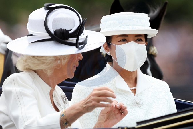 Japan's Empress Masako, accompanied by Britain's Queen Camilla, rides in a carriage on the day of a state visit, in London, Britain, June 25, 2024. NO UK USE FOR 48 HOURS, Credit:Avalon.red / Avalon
