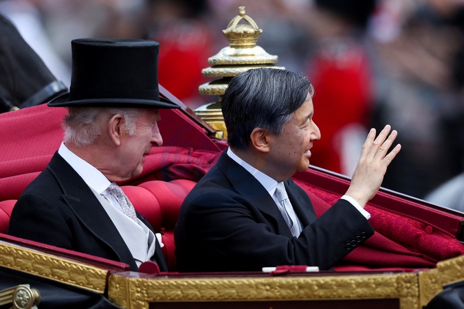 Ceremonia powitalna i przejażdżka powozem podczas wizyty cesarza Japonii Naruhito w Londynie