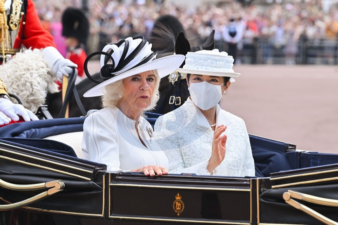 la reine consort Camilla et l'impératrice Masako du Japon - Cérémonie d'accueil et trajet en calèche lors de la visite de l'empereur Naruhito du Japon à Londres le 25 juin 2024. © Photoshot / Panoramic / Bestimage Emperor of Japan Naruhito State Visit, Day 1, London, UK - 25 Jun 2024, Cérémonie d'accueil pour la visite d'État de l'empereur et de l'impératrice du Japon - Horse Guards Parade - Londres
