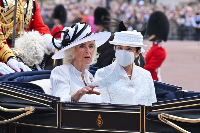 la reine consort Camilla et l'impératrice Masako du Japon - Cérémonie d'accueil et trajet en calèche lors de la visite de l'empereur Naruhito du Japon à Londres le 25 juin 2024. © Photoshot / Panoramic / Bestimage Cérémonie d'accueil pour la visite d'État de l'empereur et de l'impératrice du Japon - Horse Guards Parade - Londres