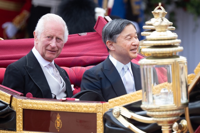 Ceremonia powitalna i przejażdżka powozem podczas wizyty cesarza Japonii Naruhito w Londynie