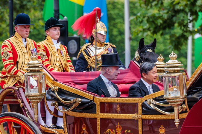 Ceremonia powitalna i przejażdżka powozem podczas wizyty cesarza Japonii Naruhito w Londynie