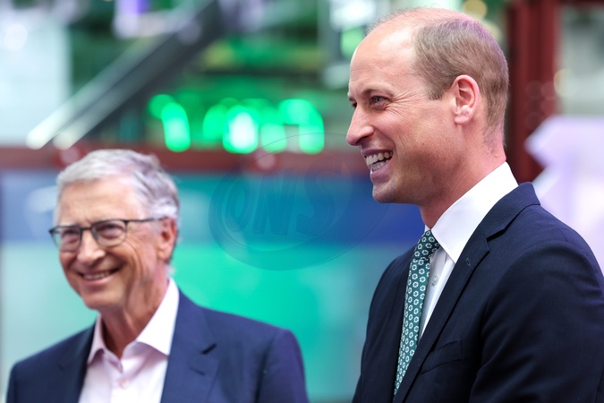Bill Gates, founder of Breakthrough Energy and Prince William, Prince of Wales wearing a recycled tie laughing during a tour of the Innovation Showcase at the Breakthrough Energy Summit on June 27, 2024 in London, England. The Breakthrough Energy Summit brings together leaders in technology, policy, science, academia, and business to collaborate on innovative climate solutions. Over 1,200 participants are expected to attend the 2024 Summit. NO UK USE FOR 48 HOURS, Credit:Avalon.red / Avalon