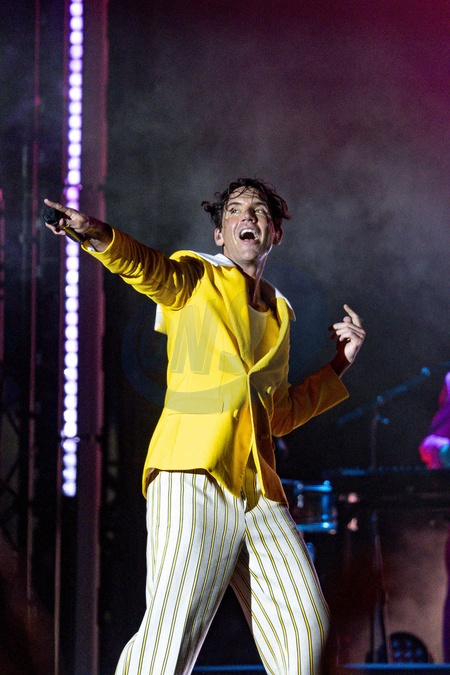 Mika sur la scène du "Printemps de Perouges" au Château de Saint-Maurice-de-Remens, le 27 juin 2024. Mika on stage at "Printemps de Perouges” at the Château de Saint-Maurice-de-Remens, June 27, 2024.