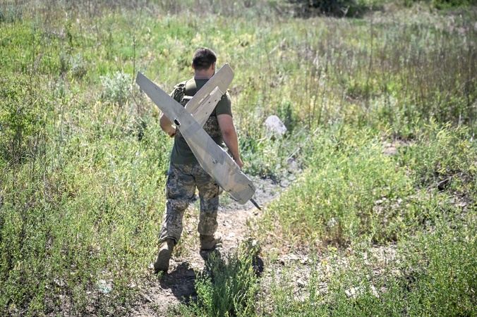 DONETSK REGION, UKRAINE - JUNE 13, 2024 - An aerial reconnaissance man of the 148th separate artillery brigade of the Ukrainian Air Assault Forces carries a disassembled drone to the launch point, Donetsk region, eastern Ukraine, Credit:Dmytro Smolienko / Avalon