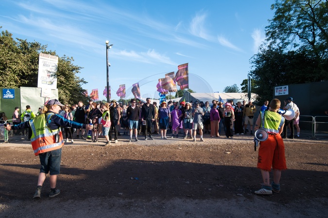 Marshals conrtol the flow of the crowds during 2024 Glastonbury Festival on Friday 28 June 2024 at Worthy Farm, Glastonbury. ., Credit:Julie Edwards / Avalon