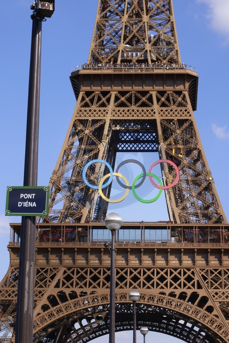 La tour Eiffel porte les anneaux olympiques pour Jeux Olympiques et Paralympiques de Paris 2024