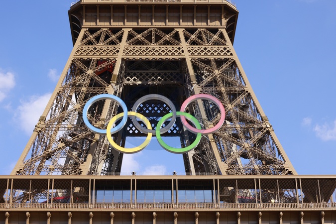 La tour Eiffel porte les anneaux olympiques pour Jeux Olympiques et Paralympiques de Paris 2024