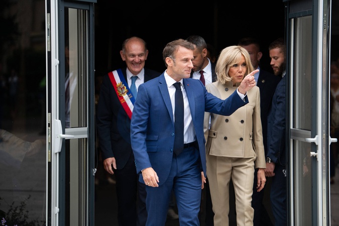 Prezydent Republiki Emmanuel Macron i jego żona, Pierwsza Dama Brigitte Macron, głosują w pierwszej turze wyborów legislacyjnych w Salle des Quatre Saisons w Le Touquet