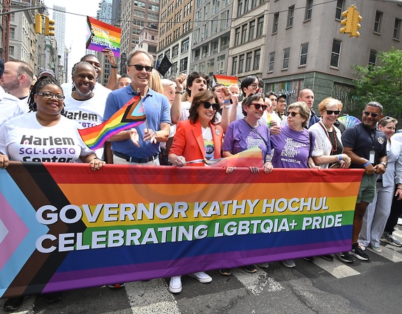 Governor Kathy Hochul and husband William Hochul, Jr march in the 2024 NYC Pride March on Fifth Avenue in New York, New York, USA on June 30, 2024., Credit:Robin Platzer / Avalon