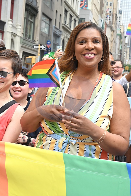 NY Attorney General Letisha James marches in the 2024 NYC Pride March on Fifth Avenue in New York, New York, USA on June 30, 2024., Credit:Robin Platzer / Avalon