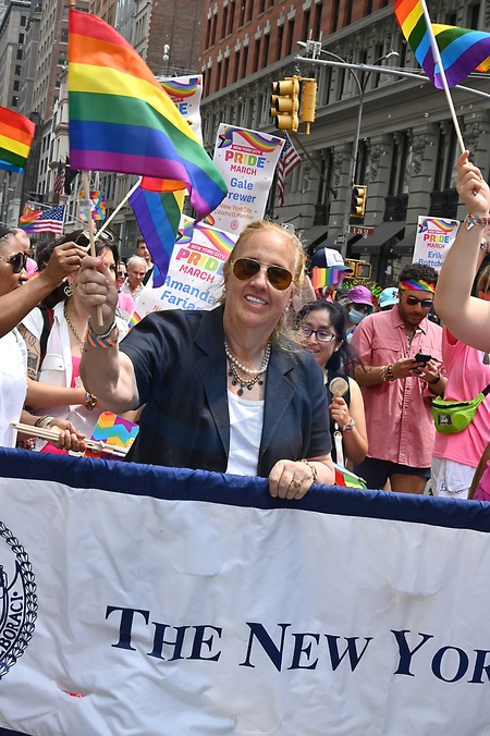 Gale Brewer marches in the 2024 NYC Pride March on Fifth Avenue in New York, New York, USA on June 30, 2024., Credit:Robin Platzer / Avalon
