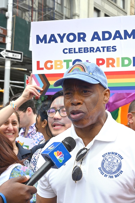 New York City Mayor Eric Adams marches in the 2024 NYC Pride March on Fifth Avenue in New York, New York, USA on June 30, 2024., Credit:Robin Platzer / Avalon