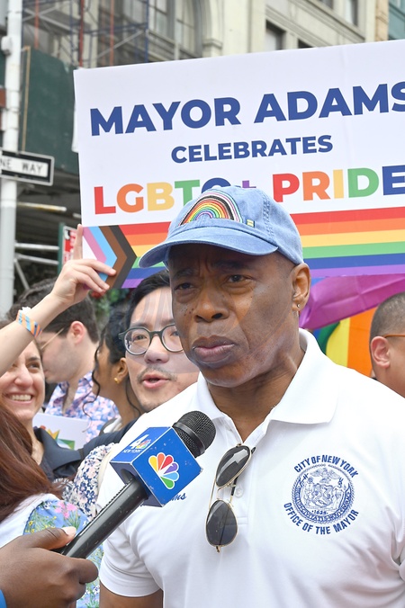 New York City Mayor Eric Adams marches in the 2024 NYC Pride March on Fifth Avenue in New York, New York, USA on June 30, 2024., Credit:Robin Platzer / Avalon