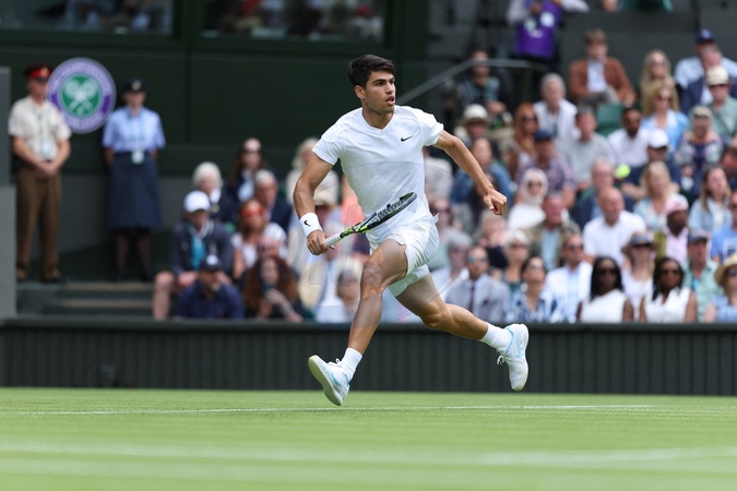 Carlos Alcaraz (Spa) - Les champions s'affrontent lors du tournoi de tennis de Wimbledon (24 juin - 14 juillet 2024) à Londres, le 1er juillet 2024. © Antoine Couvercelle / Panoramic / Bestimage The champions face each other at the Wimbledon tennis tournament (June 24 - July 14, 2024) in London, July 1, 2024.