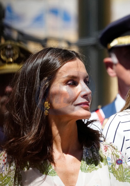 Le roi Felipe VI et la reine Letizia d’Espagne, et la princesse Leonor, lors de la cérémonie de remise des médailles à la nouvelle classe des sous-officiers de l'armée et de la Garde civile à Zaragoza