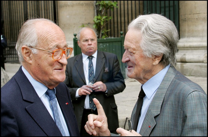 Rétro - Décès de Roland Dumas - ALAIN DECAUX ET ROLAND DUMAS - OBSEQUES DE MAITRE JEAN MARC VARAUT EGLISE SAINT EUSTACHE A PARIS
