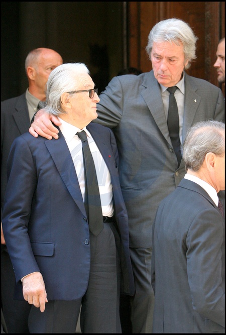 Rétro - Décès de Roland Dumas - ROLAND DUMAS ET ALAIN DELON - HOMMAGE A PASCAL SEVRAN EN L'EGLISE SAINT LOUIS EN L'ISLE A PARIS