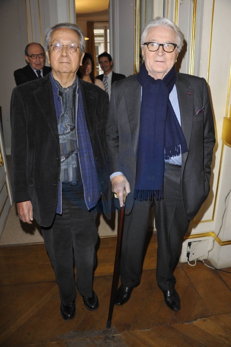 Rétro - Décès de Roland Dumas - JACQUES VERGES ET ROLAND DUMAS - REMISE DE LA MEDAILLE DE COMMANDEUR DANS L' ODRE NATIONAL DE LA LEGION D'HONNEUR A HERVE BOURGES AU MINISTERE DE LA CULTURE A PARIS