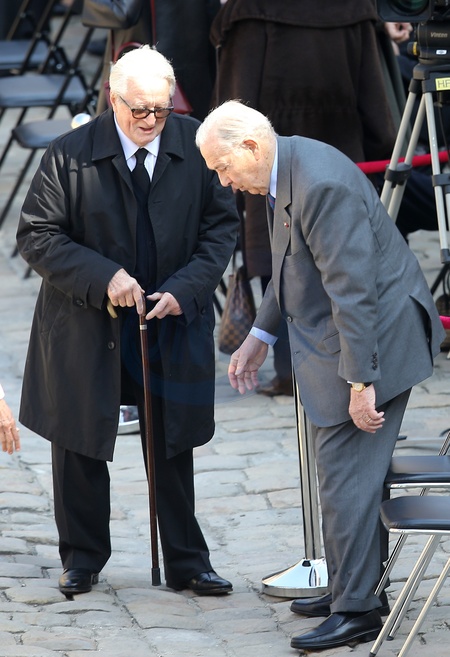 Rétro - Décès de Roland Dumas - Roland Dumas et Charles Pasqua - Obseques de Francois Jacob (prix nobel de medecine) aux Invalides, le 24 avril 2013.