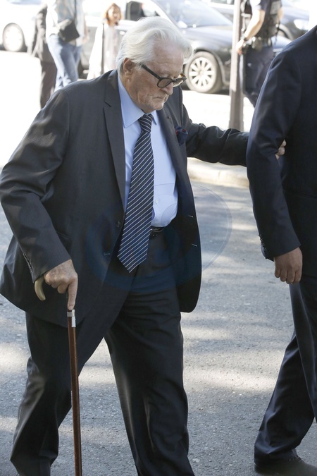 Rétro - Décès de Roland Dumas - Roland Dumas lors de la cérémonie en hommage à Michel Rocard au Temple de l'Eglise Protestante Unie de l'Etoile à Paris, le 7 juillet 2016. © Alain Guizard/Bestimage Funeral ceremony of late former French Socialist Prime Minister Michel Rocard in a church in Paris, France, July 7, 2016.
