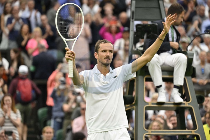 Daniił Miedwiediew pałkał Alexandre Muller 6/7(3), 7/6(4), 6/4, 7/5 w turniejach Wimbledonu w Londynie