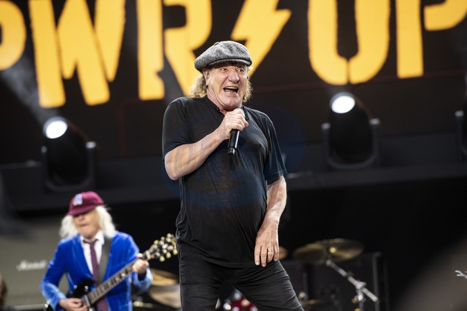 AC/DC performing live at Wembley Stadium, London on 3 July 2024Brian Johnson ,lead singer and Angus Young ,lead guitaristAC/DC are an Australian rock band formed in '73. It was founded by the Young brothers.Their music has been variously described as hard rock, blues rock and heavy metal, but the band calls it simply "rock and roll". They are cited as a formative influence on the new wave of British heavy metal bands. AC/DC were inducted into the Rock and Roll Hall of Fame in '03.This is their Power up tour (styled PWR/UP Tour) for their seventeenth studio album Power Up, released '20., Credit:Dafydd Owen / Avalon