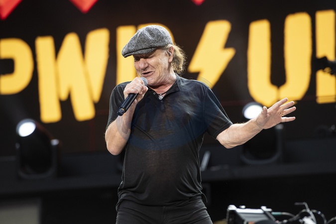 AC/DC performing live at Wembley Stadium, London on 3 July 2024Brian Johnson ,lead singerAC/DC are an Australian rock band formed in '73. It was founded by the Young brothers.Their music has been variously described as hard rock, blues rock and heavy metal, but the band calls it simply "rock and roll". They are cited as a formative influence on the new wave of British heavy metal bands. AC/DC were inducted into the Rock and Roll Hall of Fame in '03.This is their Power up tour (styled PWR/UP Tour) for their seventeenth studio album Power Up, released '20., Credit:Dafydd Owen / Avalon