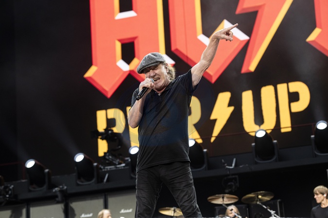 AC/DC performing live at Wembley Stadium, London on 3 July 2024Brian Johnson ,lead singerAC/DC are an Australian rock band formed in '73. It was founded by the Young brothers.Their music has been variously described as hard rock, blues rock and heavy metal, but the band calls it simply "rock and roll". They are cited as a formative influence on the new wave of British heavy metal bands. AC/DC were inducted into the Rock and Roll Hall of Fame in '03.This is their Power up tour (styled PWR/UP Tour) for their seventeenth studio album Power Up, released '20., Credit:Dafydd Owen / Avalon