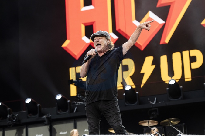 AC/DC performing live at Wembley Stadium, London on 3 July 2024Brian Johnson ,lead singerAC/DC are an Australian rock band formed in '73. It was founded by the Young brothers.Their music has been variously described as hard rock, blues rock and heavy metal, but the band calls it simply "rock and roll". They are cited as a formative influence on the new wave of British heavy metal bands. AC/DC were inducted into the Rock and Roll Hall of Fame in '03.This is their Power up tour (styled PWR/UP Tour) for their seventeenth studio album Power Up, released '20., Credit:Dafydd Owen / Avalon