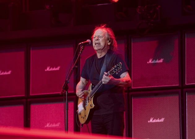 AC/DC performing live at Wembley Stadium, London on 3 July 2024Stevie Young ,rhythm guitarist, backing vocalsAC/DC are an Australian rock band formed in '73. It was founded by the Young brothers.Their music has been variously described as hard rock, blues rock and heavy metal, but the band calls it simply "rock and roll". They are cited as a formative influence on the new wave of British heavy metal bands. AC/DC were inducted into the Rock and Roll Hall of Fame in '03.This is their Power up tour (styled PWR/UP Tour) for their seventeenth studio album Power Up, released '20., Credit:Dafydd Owen / Avalon