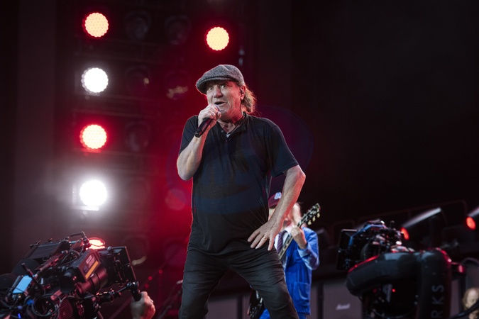 AC/DC performing live at Wembley Stadium, London on 3 July 2024Brian Johnson ,lead singerAC/DC are an Australian rock band formed in '73. It was founded by the Young brothers.Their music has been variously described as hard rock, blues rock and heavy metal, but the band calls it simply "rock and roll". They are cited as a formative influence on the new wave of British heavy metal bands. AC/DC were inducted into the Rock and Roll Hall of Fame in '03.This is their Power up tour (styled PWR/UP Tour) for their seventeenth studio album Power Up, released '20., Credit:Dafydd Owen / Avalon