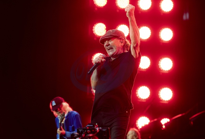 AC/DC performing live at Wembley Stadium, London on 3 July 2024Brian Johnson ,lead singerAC/DC are an Australian rock band formed in '73. It was founded by the Young brothers.Their music has been variously described as hard rock, blues rock and heavy metal, but the band calls it simply "rock and roll". They are cited as a formative influence on the new wave of British heavy metal bands. AC/DC were inducted into the Rock and Roll Hall of Fame in '03.This is their Power up tour (styled PWR/UP Tour) for their seventeenth studio album Power Up, released '20., Credit:Dafydd Owen / Avalon