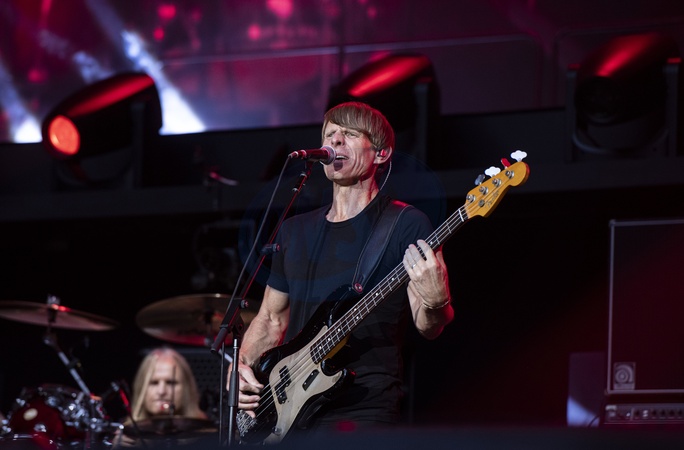 AC/DC performing live at Wembley Stadium, London on 3 July 2024Chris Chaney ,bassist, backing vocals (Touring)AC/DC are an Australian rock band formed in '73. It was founded by the Young brothers.Their music has been variously described as hard rock, blues rock and heavy metal, but the band calls it simply "rock and roll". They are cited as a formative influence on the new wave of British heavy metal bands. AC/DC were inducted into the Rock and Roll Hall of Fame in '03.This is their Power up tour (styled PWR/UP Tour) for their seventeenth studio album Power Up, released '20., Credit:Dafydd Owen / Avalon