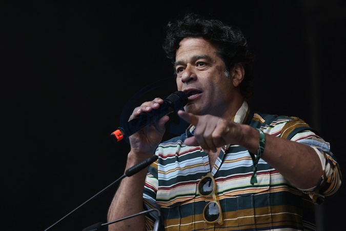 Raí, właściwie Raimundo Souza Vieira de Oliveira. Wiec przeciwko skrajnej prawicy na Place de la République w Paryżu cztery dni przed drugą turą wyborów legislacyjnych