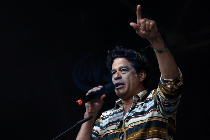 Raí, właściwie Raimundo Souza Vieira de Oliveira. Wiec przeciwko skrajnej prawicy na Place de la République w Paryżu cztery dni przed drugą turą wyborów legislacyjnych