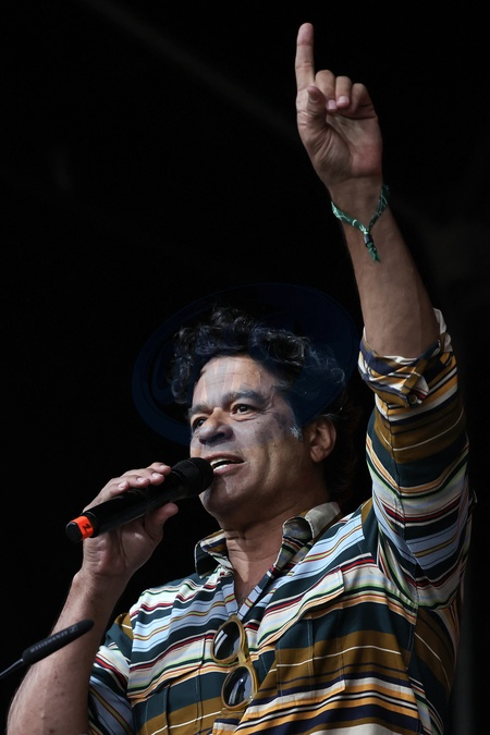 Raí, właściwie Raimundo Souza Vieira de Oliveira. Wiec przeciwko skrajnej prawicy na Place de la République w Paryżu cztery dni przed drugą turą wyborów legislacyjnych