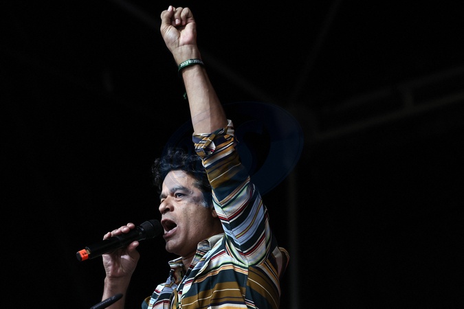 Raí, właściwie Raimundo Souza Vieira de Oliveira. Wiec przeciwko skrajnej prawicy na Place de la République w Paryżu cztery dni przed drugą turą wyborów legislacyjnych