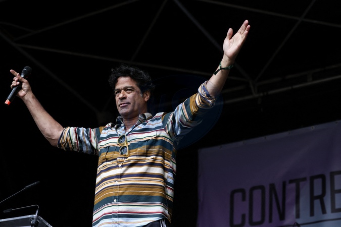 Raí, właściwie Raimundo Souza Vieira de Oliveira. Wiec przeciwko skrajnej prawicy na Place de la République w Paryżu cztery dni przed drugą turą wyborów legislacyjnych