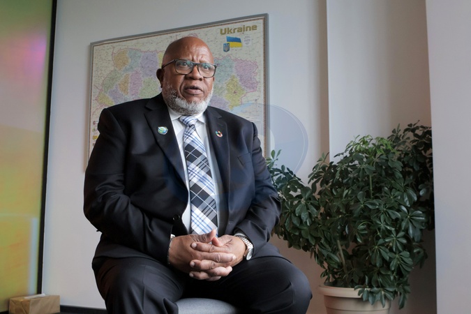 KYIV, UKRAINE- JULY 3, 2024 - President of the 78th Session of the United Nations General Assembly, Ambassador Dennis Francis gives an interview to a correspondent of the Ukrinform Ukrainian National News Agency, Kyiv, capital of Ukraine., Credit:Eugen Kotenko / Avalon