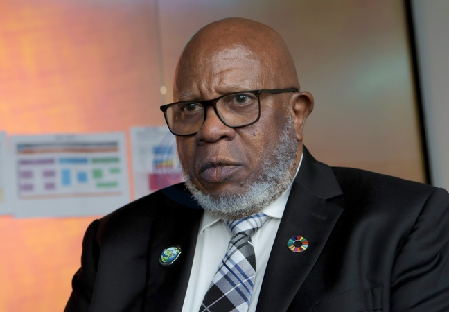 KYIV, UKRAINE- JULY 3, 2024 - President of the 78th Session of the United Nations General Assembly, Ambassador Dennis Francis gives an interview to a correspondent of the Ukrinform Ukrainian National News Agency, Kyiv, capital of Ukraine., Credit:Eugen Kotenko / Avalon