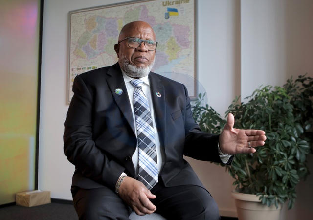 KYIV, UKRAINE- JULY 3, 2024 - President of the 78th Session of the United Nations General Assembly, Ambassador Dennis Francis gives an interview to a correspondent of the Ukrinform Ukrainian National News Agency, Kyiv, capital of Ukraine., Credit:Eugen Kotenko / Avalon