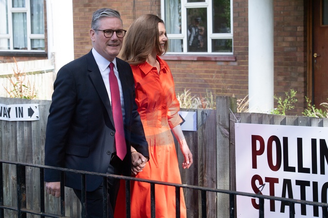 Labour leader Sir Keir Starmer and wife Victoria vote in the General election at TRA Hall, Kentish Town in London, England, UK on Thursday 4 July, 2024., Credit:Justin Ng / Avalon