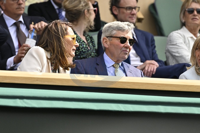 Carole Middleton i jej mąż Michael Middleton w Royal Box na turnieju Wimbledon w Londynie