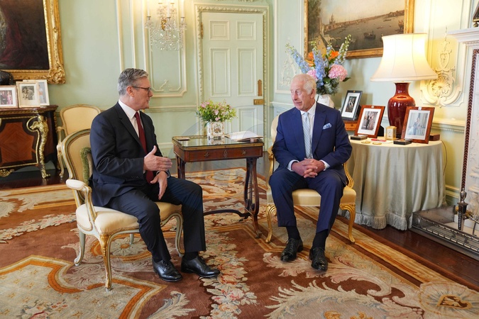 King Charles III talks with Sir Keir Starmer during an audience at Buckingham Palace, London, where he invited the leader of the Labour Party to become Prime Minister and form a new government following the landslide General Election victory for the Labour Party. Picture date: Friday July 5, 2024. NO UK USE FOR 48 HOURS, Credit:Avalon.red / Avalon