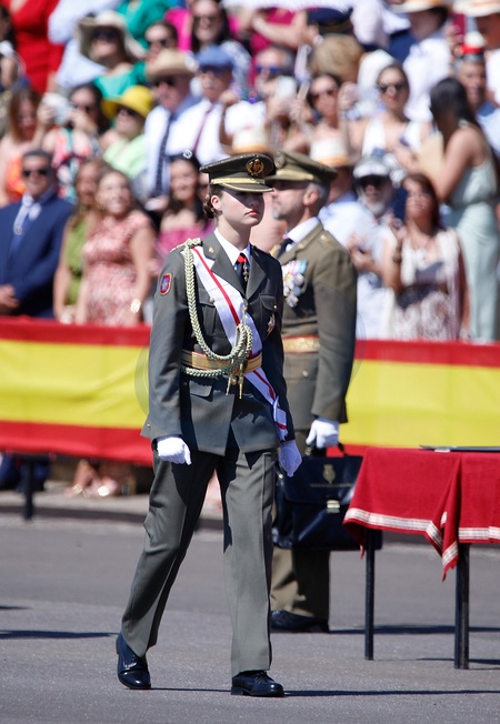 Le roi Felipe VI et la princesse Leonor assistent à la présentation de la 49ème promotion des sous-officiers à l'Académie militaire de Talarn à Lérida, le 5 juillet 2024. King Felipe VI and Crownprincess Leonor attend the presentation of Royal Discharges to the 49th Promotion of the NCO Scale at Military Academy in Talarn. Lleida - July 5, 2024