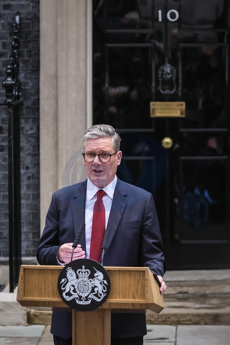 Przemówienie nowego premiera Sir Keira Starmera i poz powitalny na Downing Street w Londynie, Wlk. Brytania