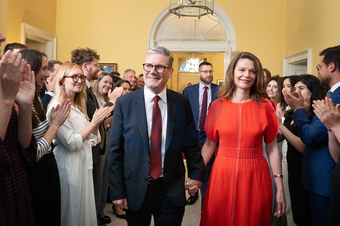 Newly elected Prime Minister Sir Keir Starmer with his wife Victoria Starmer are clapped in by staff as they enter his official London residence at No 10 Downing Street for the first time after the Labour Party won a landslide victory at the 2024 General Election., Credit:Stefan Rousseau / Avalon