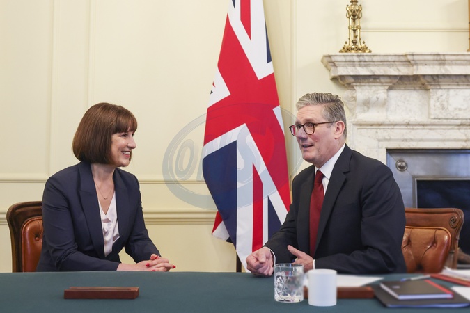 05/07/2024. London, United Kingdom. Prime Minister Keir Starmer speaks to Chancellor Rachel Reeves as he appoints his cabinet from the Cabinet Office in 10 Downing Street., Credit:Simon Dawson / Avalon